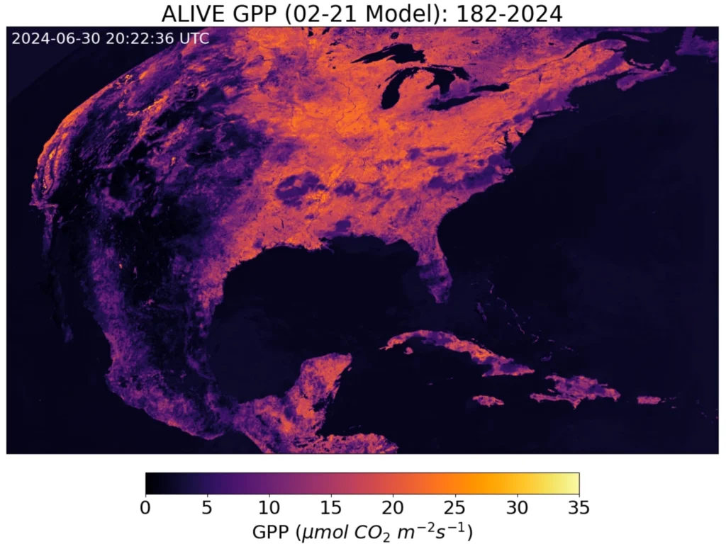 The University of Wisconsin-Madison is home to a research team called Advanced Baseline Imager Live Imaging of Vegetated Ecosystems (ALIVE). The team, working remotely and led by Prof. Paul Stoy, PhD, is building a gradient-boosting regression model using geostationary satellites to estimate terrestrial carbon and water fluctuations in near real-time. The team trains its models using GOES-R and other public satellite and meteorological datasets.