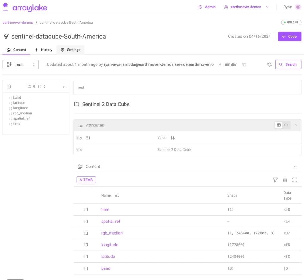 We’ve observed a growing number of organizations choosing to store their datacubes in the Zarr format—from public-sector organizations like ESA and NASA to innovative startups like Pachama and Sylvera (a valued Earthmover customer). As core developers of the open-source Zarr-Python library, and as the creators of Arraylake, the first cloud data lake platform based on the Zarr data model, we’ve been following this trend closely. Zarr is indeed a great choice for datacubes: it allows for storing multidimensional arrays (a.k.a. tensors) of unlimited size in a performant, cloud-optimized way. When paired with Xarray, you’ve got a powerful, flexible query engine for datacubes.