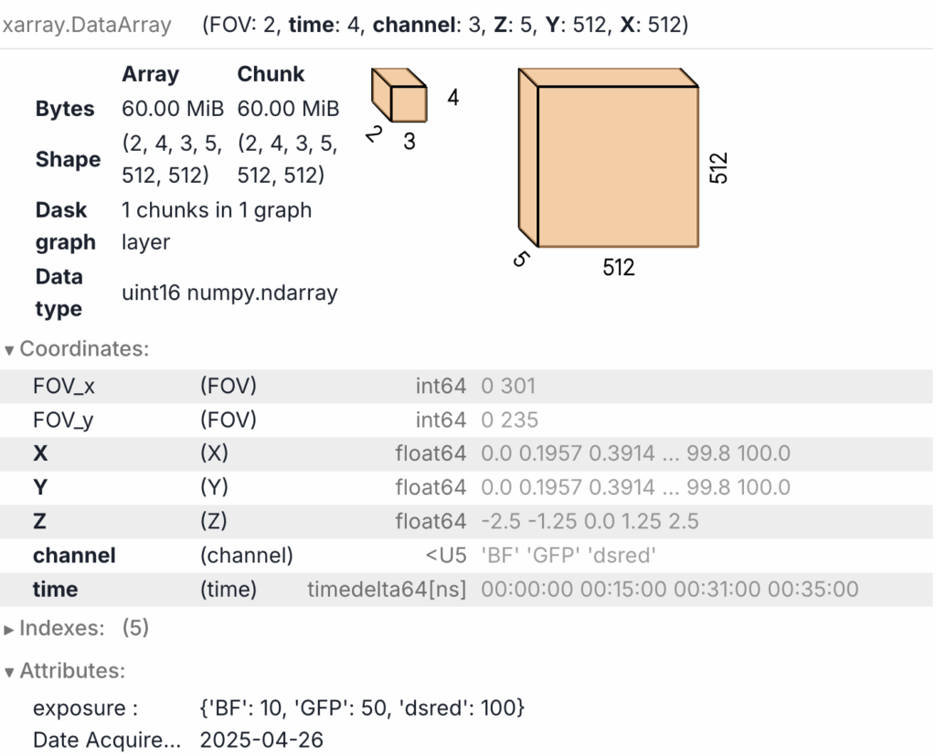 I believe Xarray can be immensely valuable to the biological community. I discovered Xarray during my PhD where I used it to keep track of complex microscopy image metadata and execute larger-than-memory jobs on the cluster. It is so useful that it since served as my default tool for all analyses in both structural and microbiology. Using Xarray means I no longer ask myself questions like: Which axis was what? Where did the exposure times go? I know I changed the media at 32 minutes, but what time index was that?